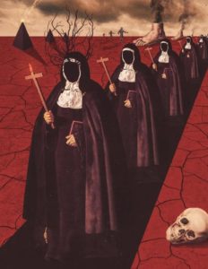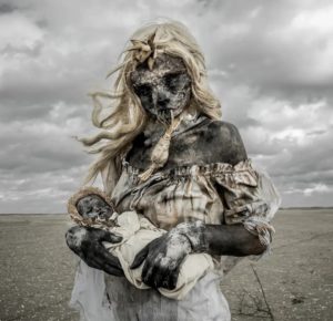 Mothmeister is the nonstop morphing alter ego of two artistic soulmates based in Belgium, home of surrealism. Through their eerie, imaginary post-mortem fairy tales they portray a series of masked, grotesque characters